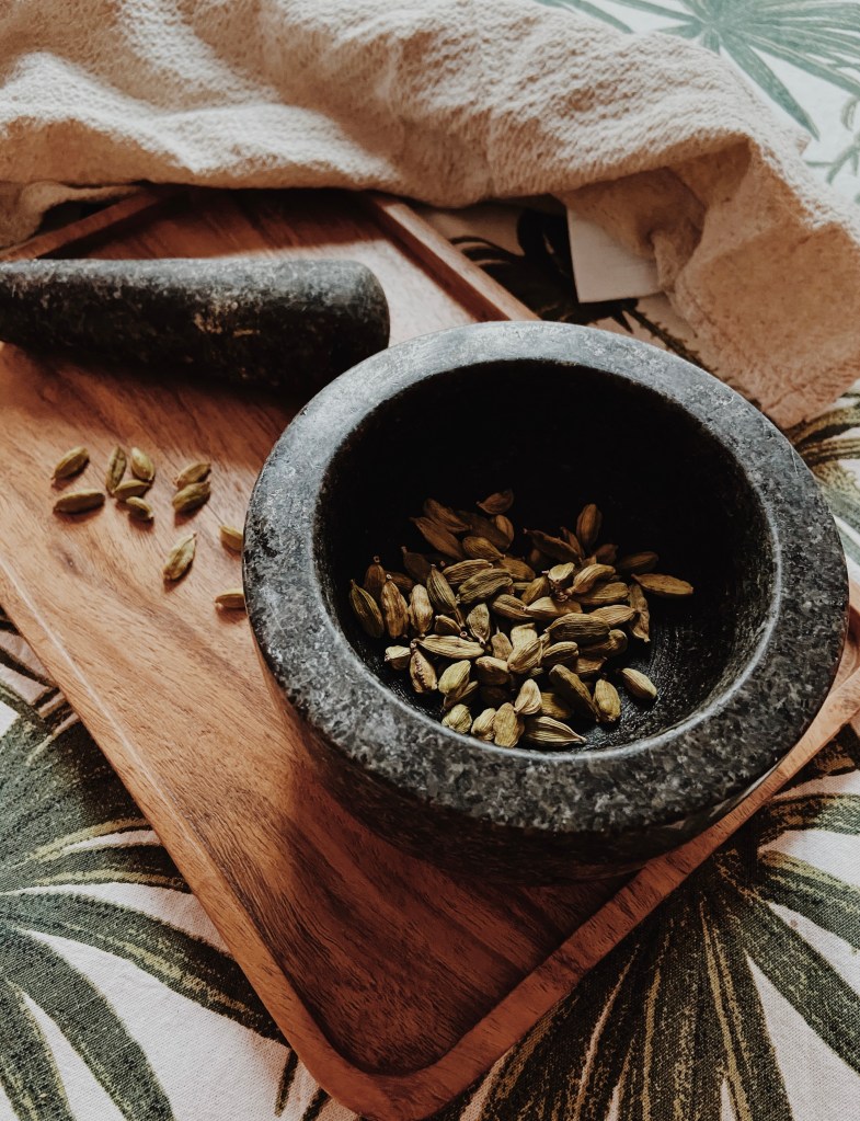The seeds need to be removed from the pod before you can crush them. This way they are prepared to be mixed into spice mixes like the famous Garam Masala. You can also add the whole pod to a dish – this is commonly done with some Middle Eastern rice dishes. Cardamom loves to be paired with fatty and creamy dishes like rice pudding, lamb dishes or even sweet baked goods. It goes well with fresh fruit, especially those with a floral note such as apricot or mango. If you’ve never used cardamom before, try not too overdo it as the spice can otherwise dominate your whole dish. Used too much? Crushed coriander seeds have a taming effect on cardamom and also compliment the spice well.