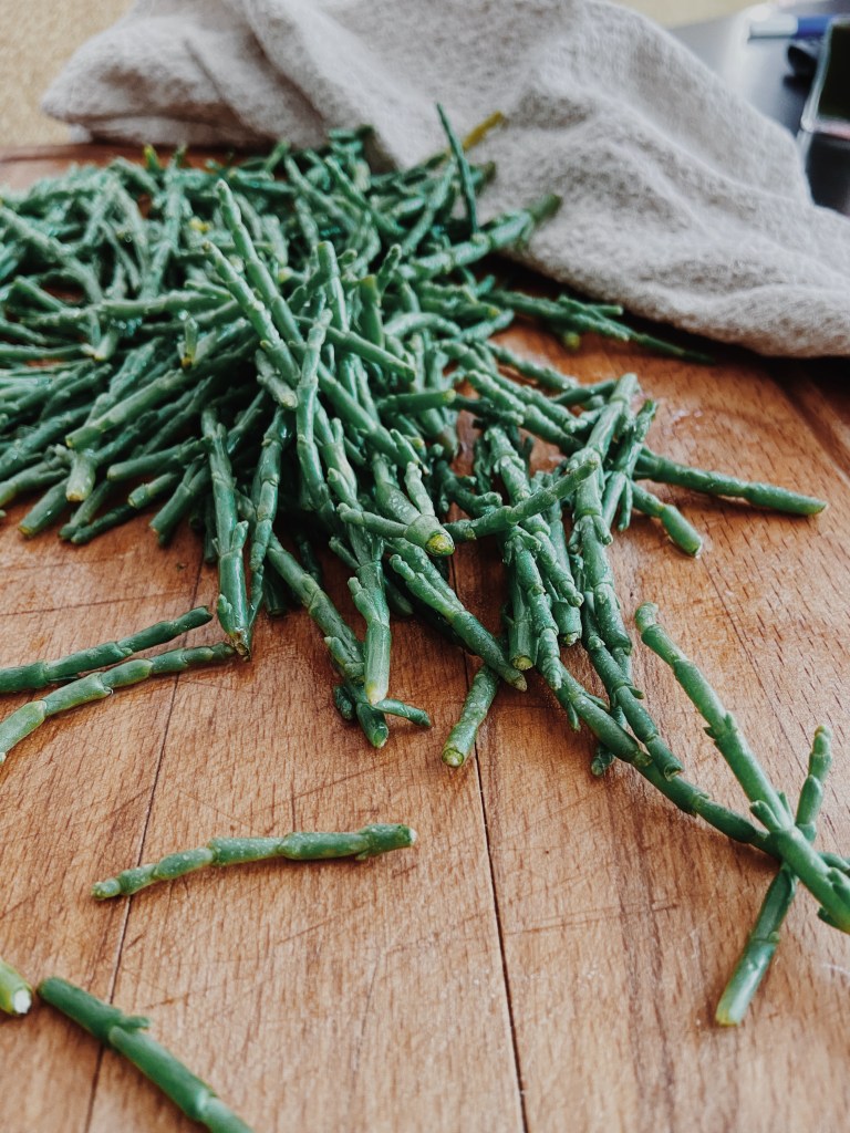 You can either go foraging for samphire yourself or pick it up at a local fishmonger or speciality shop. While there are two varieties, marsh and rock samphire, only the former is truly enjoyable. The vegetable is usually bright green but can also be purple. Samphire is sometime available pickled as well but the salty aroma gets a little lost that way. When buying fresh samphire make sure its vibrantly coloured and doesn’t look wilted.